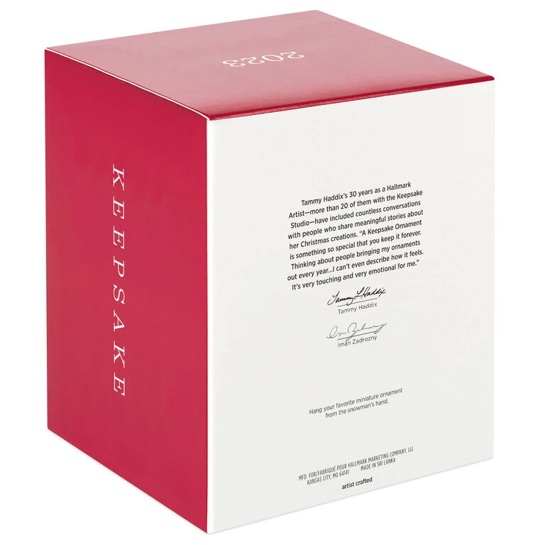 - Key Features: Includes year-dated snowflake ornament or hang your favorite miniature ornament from the snowman’s hand.